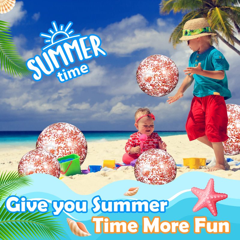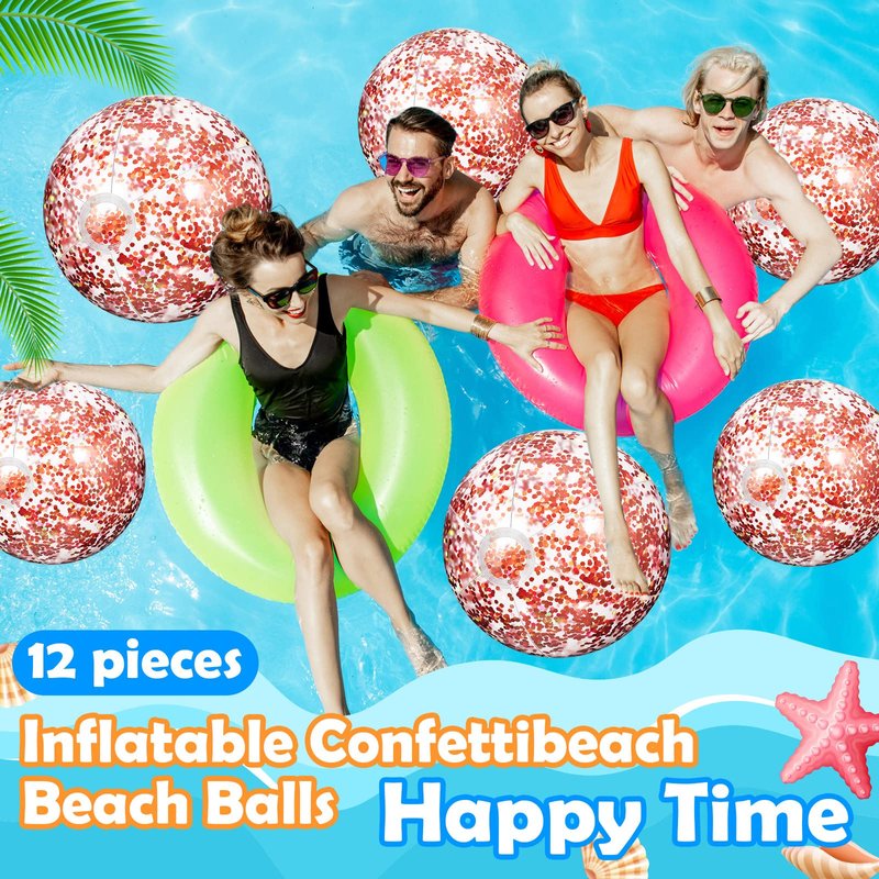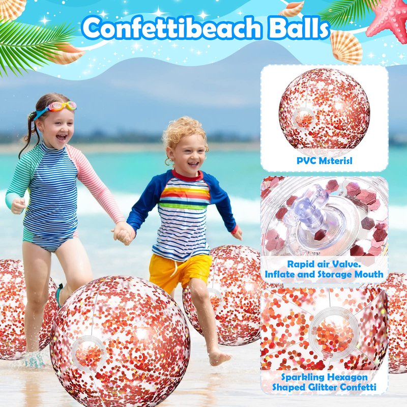 - Glitter Confetti Beach Ball: you can get 2 pieces 24 inch huge beach balls and 10 pieces 16 inch clear beach balls, all with glitter confetti inside, 12 pieces with 2 sizes could satisfy your needs of playing even as decoration, or play with your partners and family