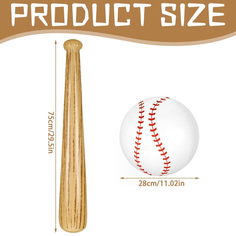 Features: The inflatable baseball toys will enhance the atmosphere of the baseball theme party, outdoor sports theme activities, kids birthday parties or celebrations. And you can also give it to children as a gift. These baseball themed party supplies are nice for pool party, summer beach party, family gathering, school activities and so on. The inflatable ball and baseball bat are simple to blow up and deflate, which are portable to carry outside. Specifications: Material: PVCColor: as shown in the pictureSize: Baseball beach ball: 28 cm/ 11.02 inchBaseball bat: 75 cm/ 29.5 inchPackage includes: 1 x Baseball beach ball2 x Baseball batNotes: Manual measurement, please allow slight errors on size. The color may exist a slight difference due to different screen displays. Do not overinflate the balloons to avoid bursting.