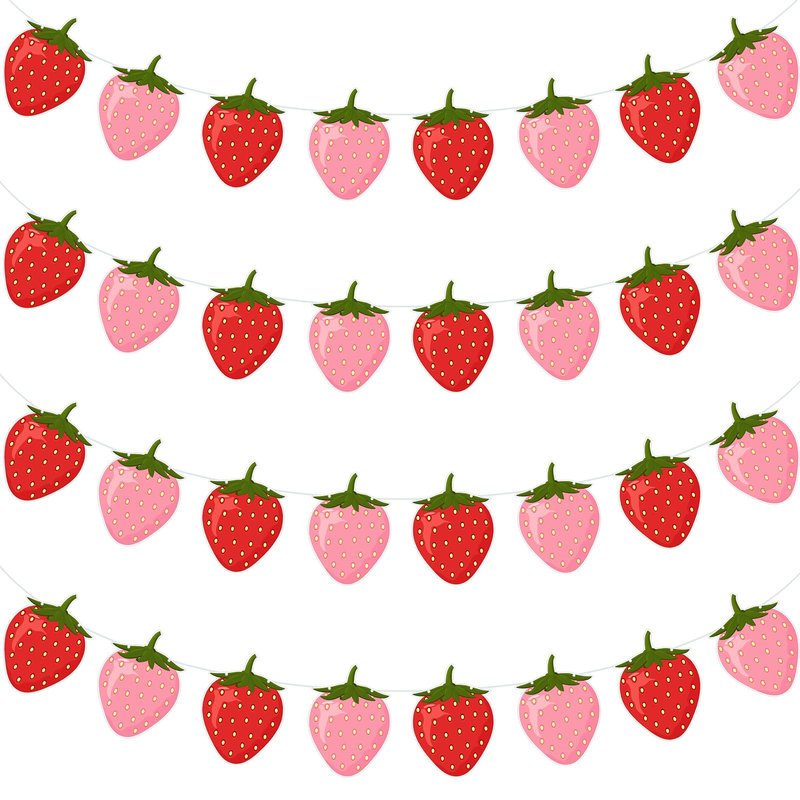 - What You Receive: the package includes 4 pieces of strawberry birthday garlands, and each garland has 8 pieces of cutout strawberry signs in red and pink that the enough quantity can meet your home ceiling or wall decor needs