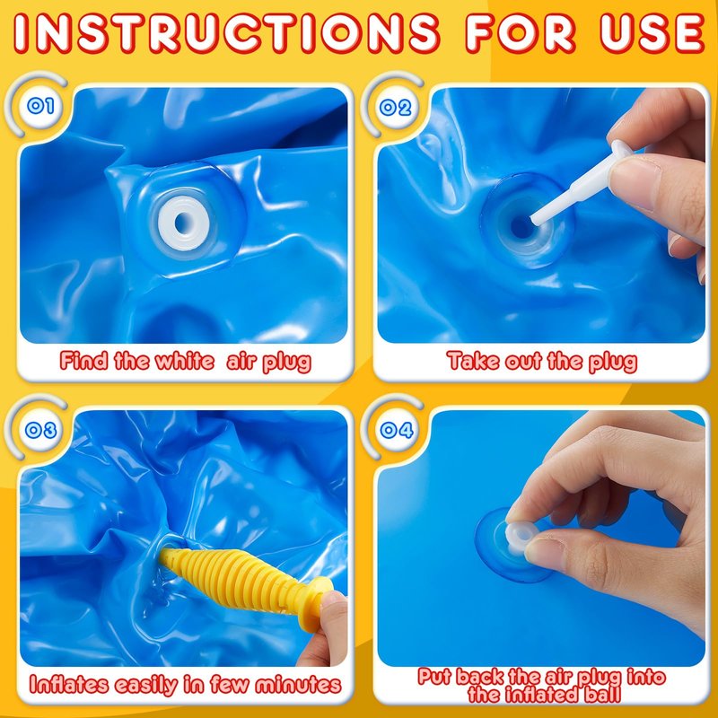 - Inflation Instructions: take out the air plug of the exercise ball, insert the tip of the inflation pump to the air hole of the ball, push the inflation pump by hand to inflate the ball to the appropriate size, and then quickly install the air plug back into the hole