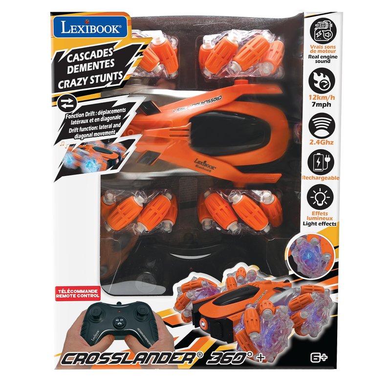 Lexibook - Crosslander Glow-in-The-Dark Radio Control car, Remote Control, Rechargeable, Electronic Action Game, Orange/Black, RC21