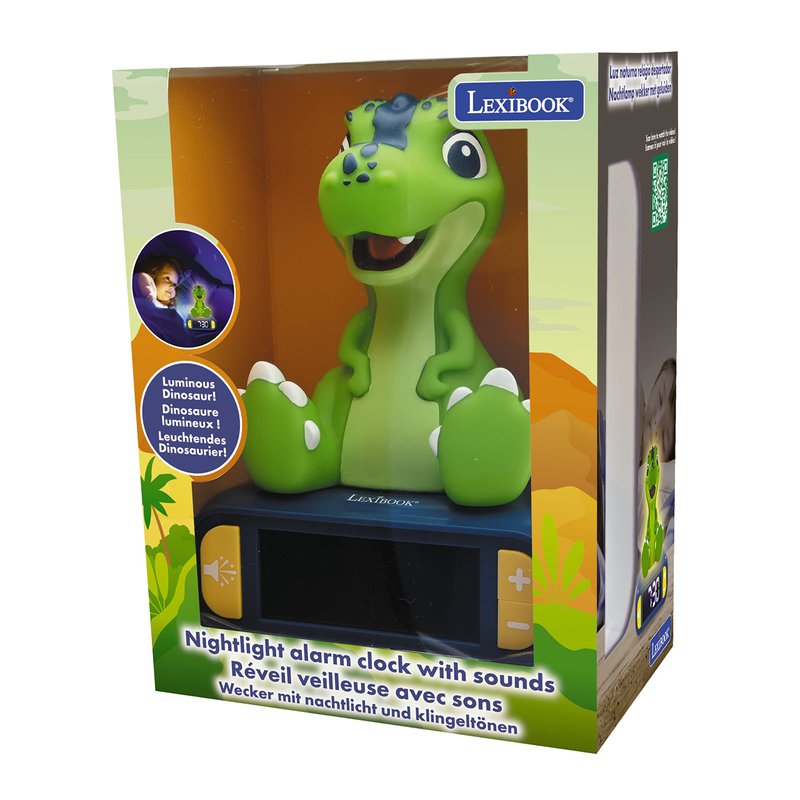 Lexibook - Dinosaur Nightlight Alarm Clock, Clock, Alarm Clock for Boys and Girls, Snooze, Blue/Green - RL800DINO