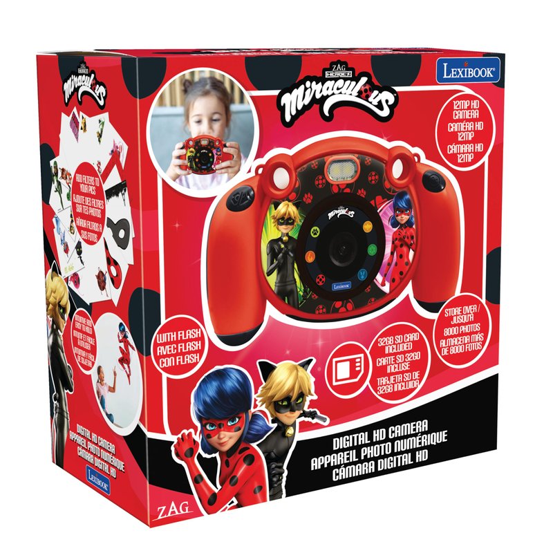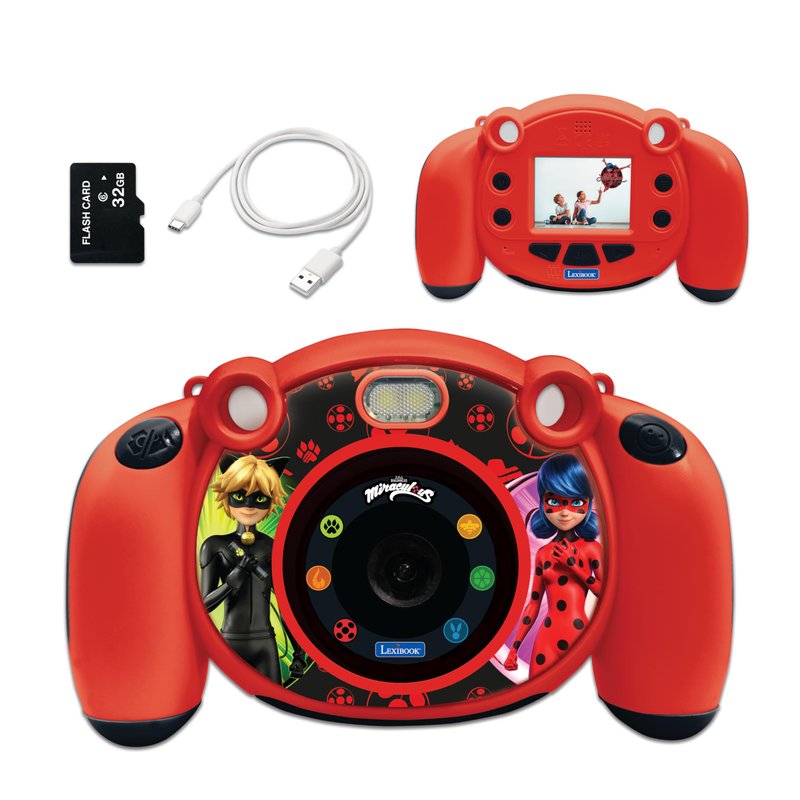LEXiBOOK - Miraculous - 4-in-1 Kids Camera with Photo, Video, Audio and Game Functions, 32GB SD Card Included - DJ080MI