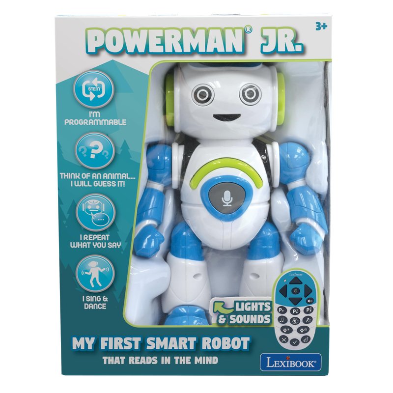 Lexibook - Powerman Jr. Smart Interactive Toy That Reads in The Mind Toy for Kids Dancing Plays Music Animal Quiz STEM Programmable Remote Control Boy Robot Junior Green/Blue - ROB20EN