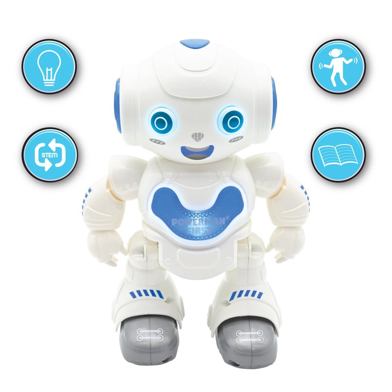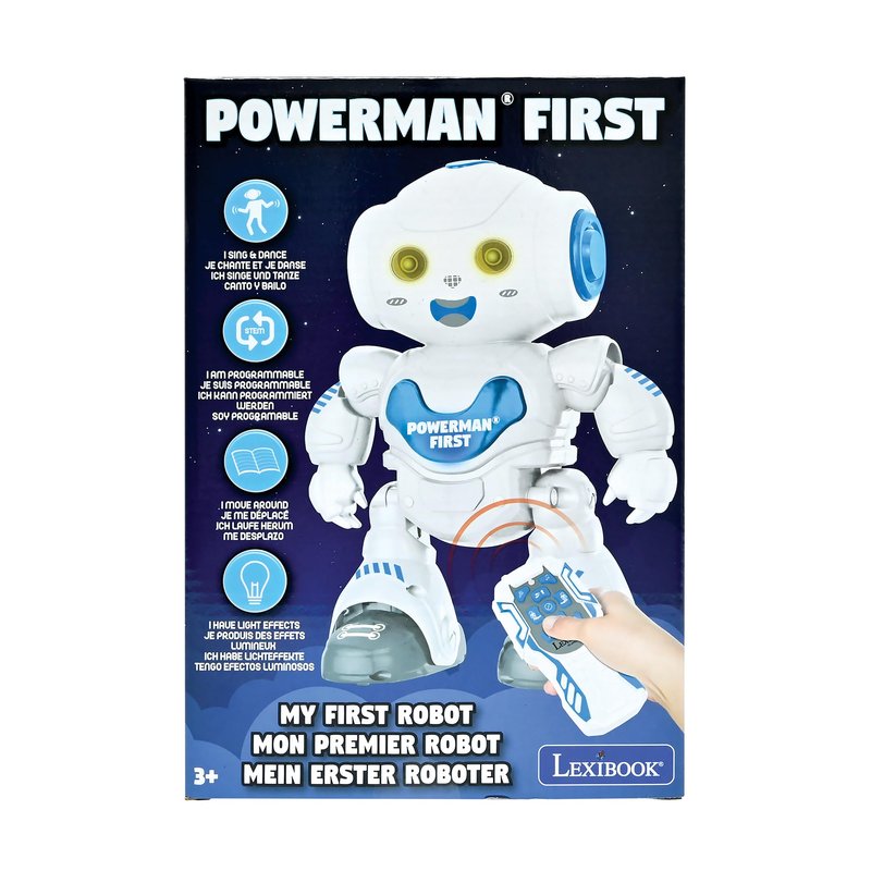LEXIBOOK ROB16 Powerman, First Smart Interactive Learning Robot Toy for Kids Dancing Plays Music Boy Girl, White/Blue