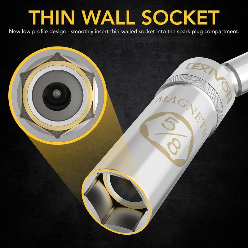 LEXIVON 5/8" Swivel Magnetic Spark Plug Socket, 3/8" Drive x 10" Total Length | Enhanced Magnetic Design with Thin Wall Socket, Cr-v Steel (LX-122)