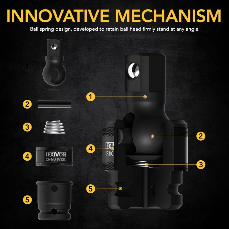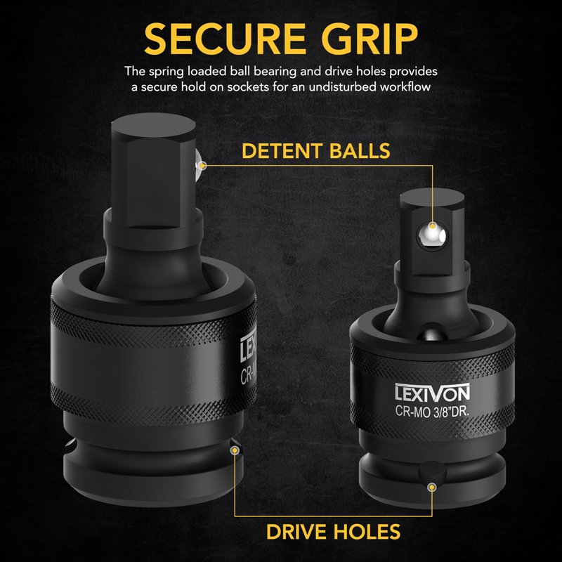 - USE WITH ANY HIGH-TORQUE IMPACT GUN! The LEXIVON fully impact-grade universal joint sockets are made from robust heat treated Chrome Molybdenum alloy steel.