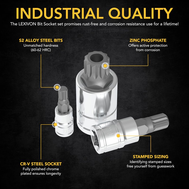 - LONGEVITY - Complete rust and corrosion resistance with fully polished, Chrome plated mirror finish sockets and Zinc Phosphate bits treatment.