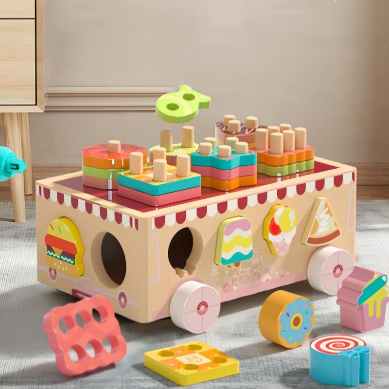 Lexza Montessori Wooden Ice Cream Dessert Cart, Shape Sorting Toys for Boys and Girls 3-6 Years Old,One Year Old Girl Birthday Gifts,Early Childhood Education Fine Motor Skills Development