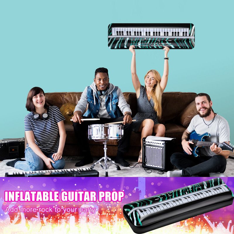 Features: The blow up instruments have a valve that allows you to inflate in minutes to start your party right away, and deflate them for next use when you don't want to. The rock star toy is attractive and safe, so you can give it as a gift to neighbors, colleagues, relatives, family who will host a retro themed party. Specifications: Material: PVC material Color: white and black Size: about 56 x 17 x 10 cm/ 22 x 6.7 x 3.9 inch Package includes: 2 x Inflatable keyboard piano Notes: Manual measurement, please allow slight errors on size. The color may exist a slight difference due to different screen displays. Not suitable for people younger than 12. Air pump not included. Do not over inflate the guitar, and keep it away from heat, fire and anything pointed.