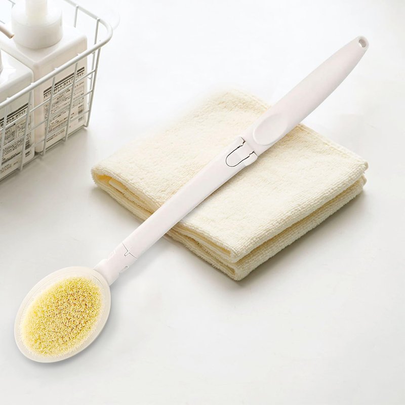 - A long curved handle allows you can reach all places like your back, leg, arm and foot,it's a good tools to help the people who unable to bend or twist their back. The handle also design as foldable which allow you to take it outside when you have a travel or gym exercise
