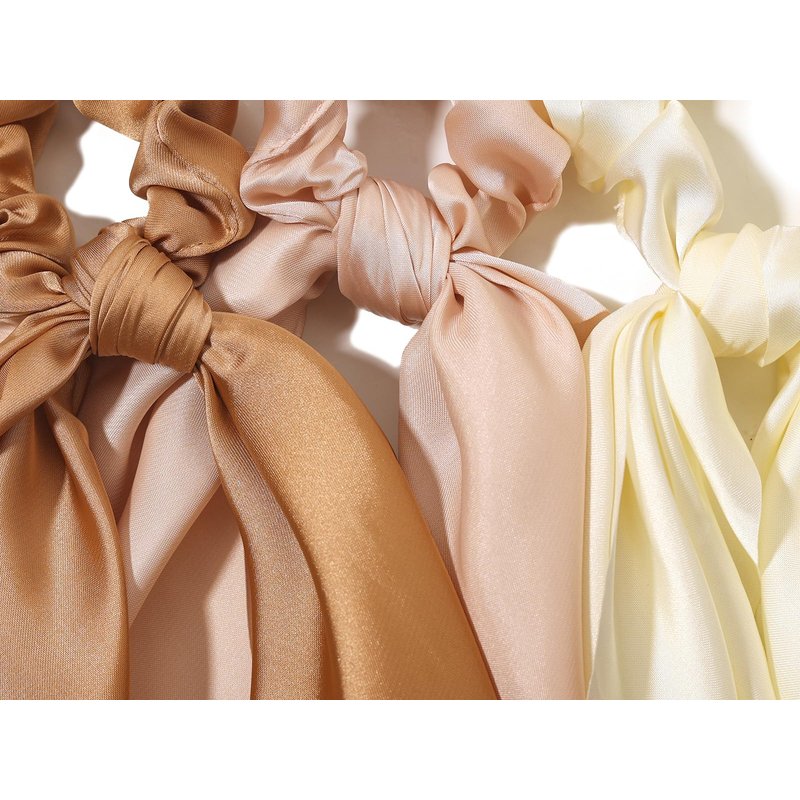 - Scarf scrunchies can be used to wrap around your bun, tie around your tail,wear as a bracelet or donamate your handbag with the ribbon part.Widely used.
