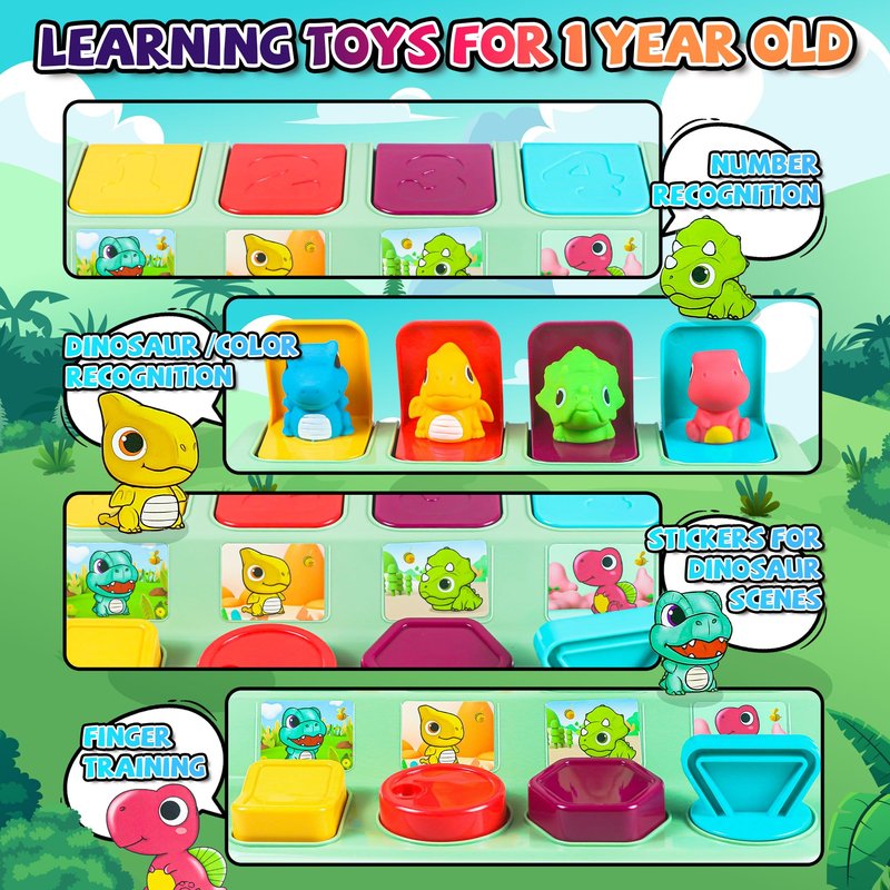 - Educational Toy for 1 Year Old Boys Girls: Pop-up dinosaur toy for early development, helps to stimulate children's imagination and desire to explore, improving toddlers' hand-eye coordination, fine motor skills, colour and number recognition;