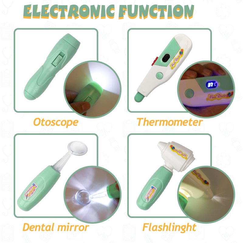 - EDUCATIONAL PRETEND TOY: By playing doctor toys children get familiar with those medical tools, which helps them to relieve anxiety and reduce fear of going to see a doctor. Kids' imagination and social skills will also get enhanced greatly