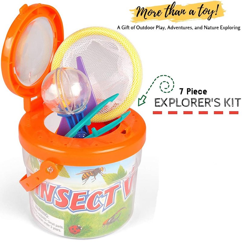 Let your Little Explorer enjoy the backyard with this awesome Insect Bug Adventure Set. Insect Kit includes 7 Essential Pieces to keep your little one busy for hours as he or she finds insects to capture and study them. Includes Butterfly Net, Bug Catcher and Tweezers for your Little Scientist to capture the bugs. Store them in a Field Collector Jar and examine them in the Insect Collection Containers with Folding Magnifying Lens (includes One Small and One Large Container). Ages 3 and Up