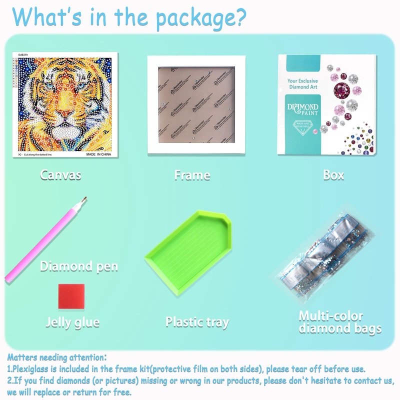 - 【REMINDER】 If you lack diamond particles during use; or damaged or missing due to transportation, please let us know, we will make sure to solve all your concerns with 24 business hours.