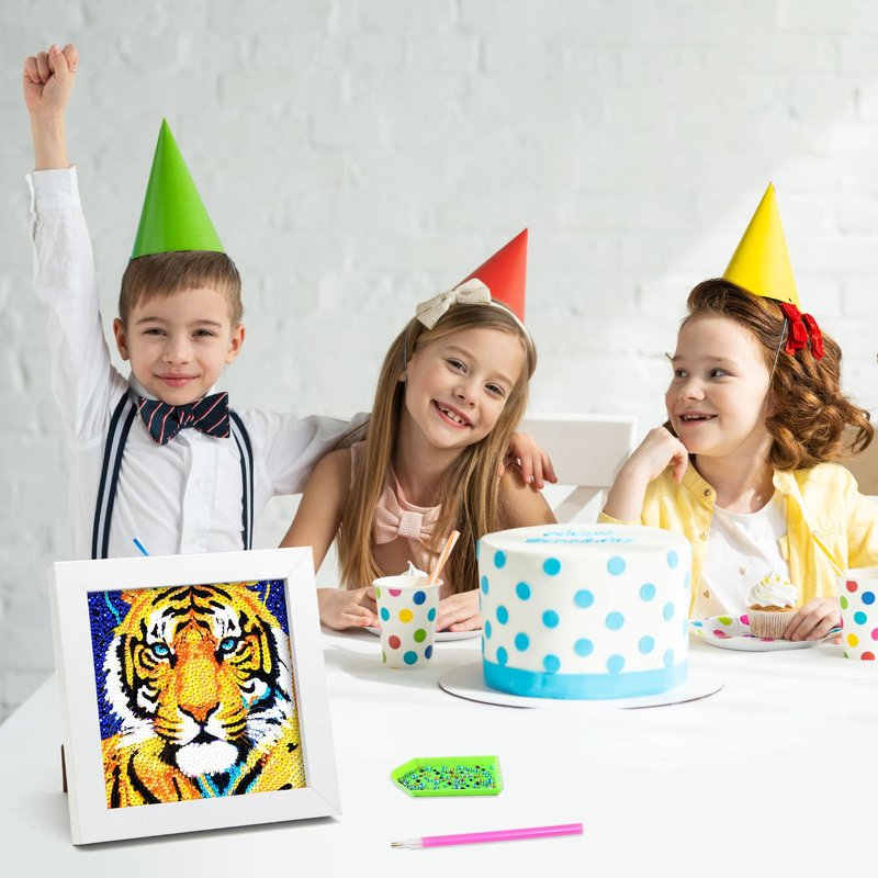 Libfx Diamond Art Kits for Kids with Frame Diamond Art for Kids Girls Boys Beginners Arts and Crafts for Kids Ages 8 9 10 12 Christmas Birthday Gifts (Tiger)