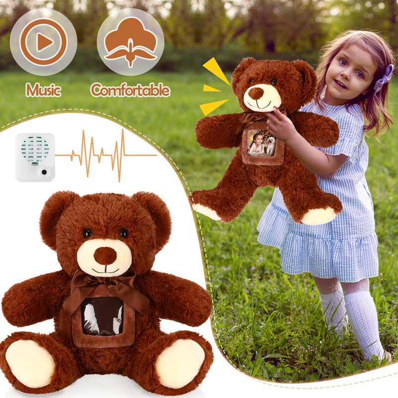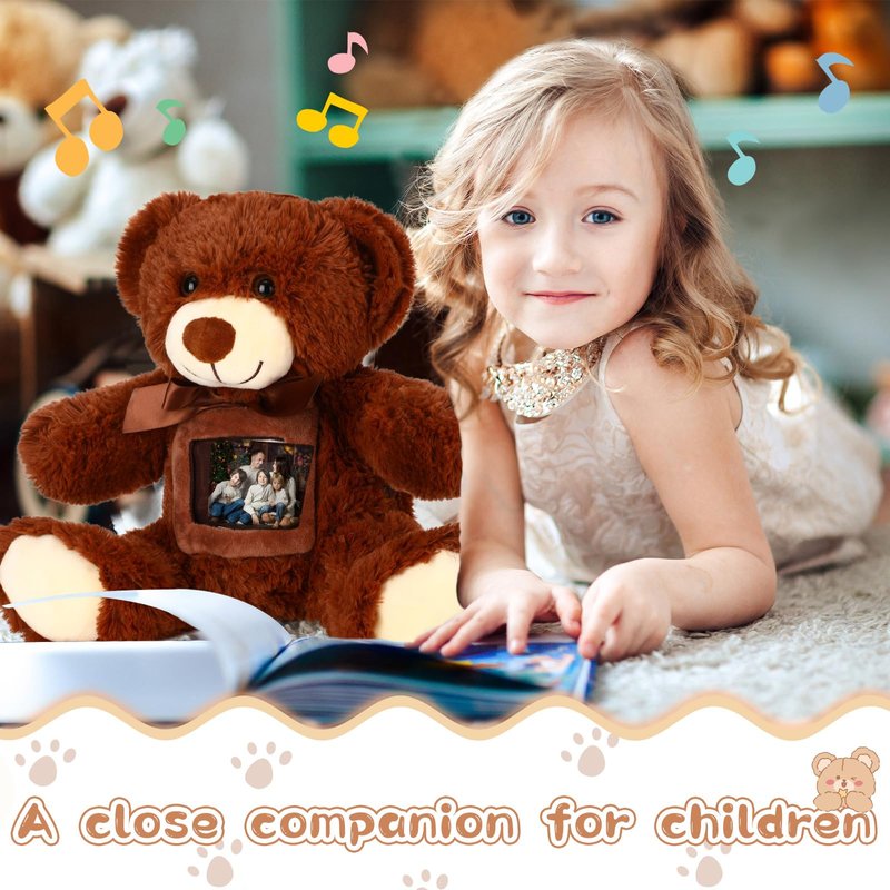 - Proper Size: the recordable stuffed animal bear measures approx. 12 inches tall when standing, and is designed to hold approx. 3.2 x 3.2 inches photo or letter; The voice recorder inside the bear allows you to record some cordial greetings
