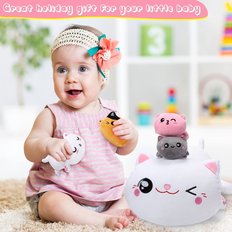 - Stuffed Animals with Babies Inside: package includes 5 pieces of stuffed cats, including 1 mommy cat, about 16 inch, and 4 plush kittens, each about 5 inch, cute and delicate, which will easily catch people's attentions