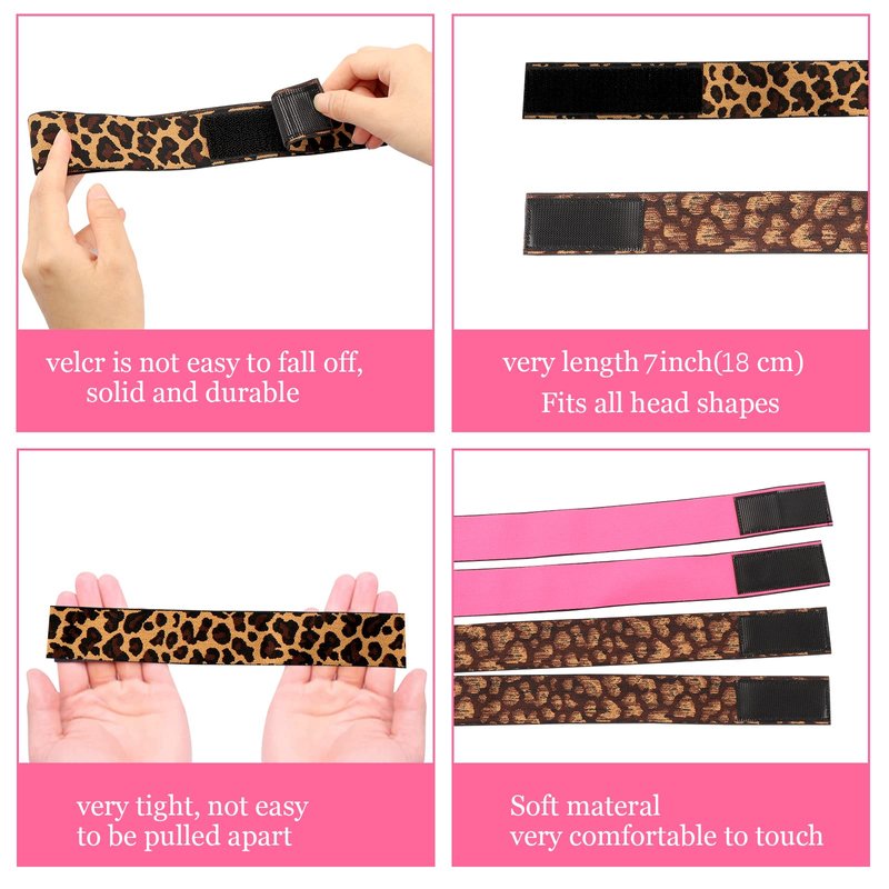 - ☆【Two Colors Wig Band】2Pcs Leopard Print Wig band & 2Pcs Pink wig band, which is more fashionable, eatures a velcr strap which makes it easy to adjust the tightness, No need to tie knots, The velcr tape on both ends makes it adjustable, tighter and firmer, and will not loosen;