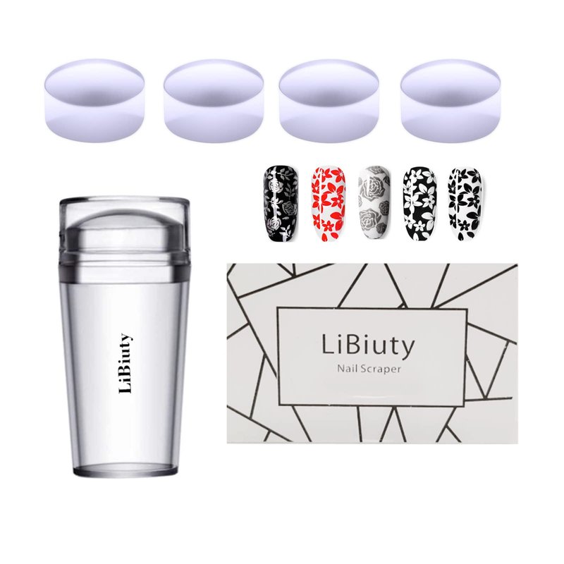 LiBiuty Clear Silicone Nail Art Stamper Scraper Set with Extra 4Pcs Stamper Replacement Heads