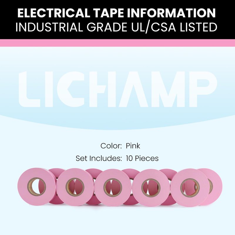 Lichamp 10-Pack Pink Electrical Tape Waterproof, 3/4 in x 66ft, Industrial Grade UL/CSA Listed High Temp Electrical Tape Pink Electric Super Vinyl