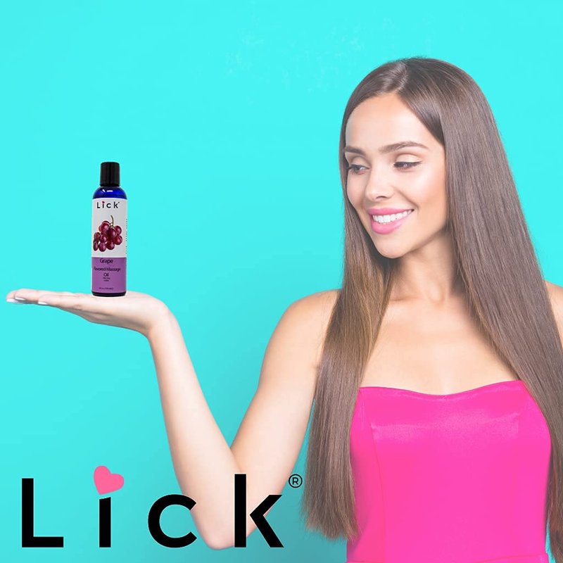 Lick Grape Flavored Edible Massage Oil – Infused with Vitamin E, Sweet Almond & Coconut Oil – Skin & Body Safe, Non-Sticky, Vegan – Portable Travel-Ready Bottle, 4 oz