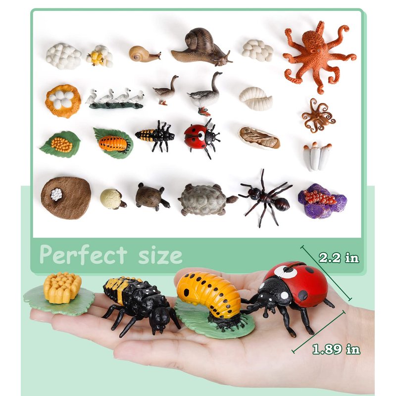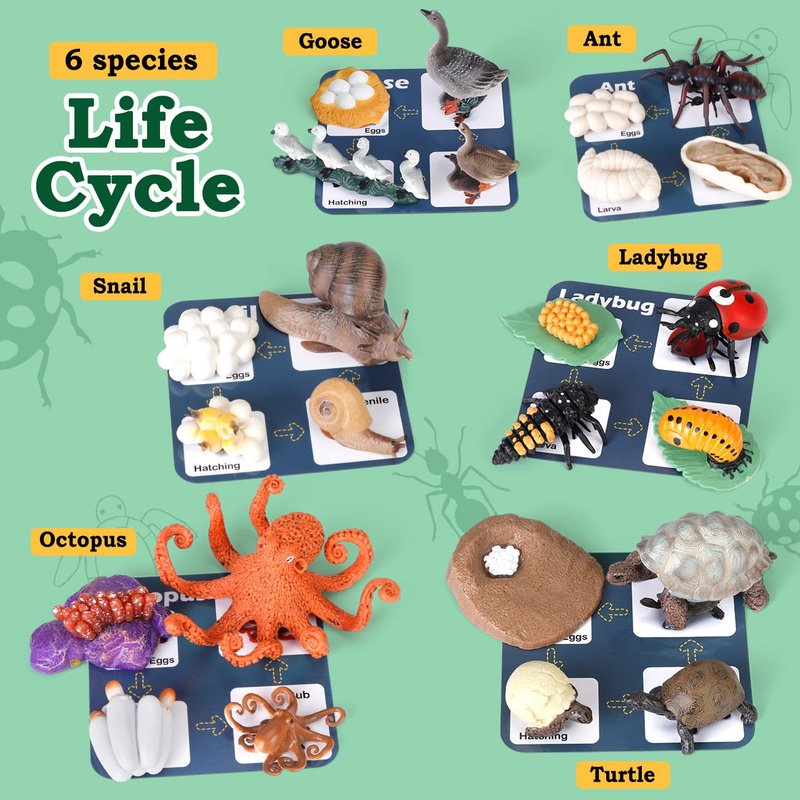 - Created for Fun Learning Activities - In Matesy life cycle set, it perfect to show life cycle of each species based on little figures and guide cards. Vivid figures and guide cards gives simple animal facts and discussion starters to learn while playing. It Help students visually explore the life cycle of Ladybug, Ants, Goose, Land Turtle, Snail, Octopus.
