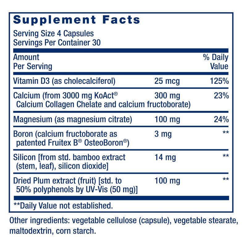 Life Extension Bone Strength Collagen Formula, Calcium Collagen chelate, Calcium fructoborate, Vitamin D3, Magnesium Citrate, Silicon, Dried Plum Extract, Boron, Gluten-Free, Non-GMO, 120 Capsules