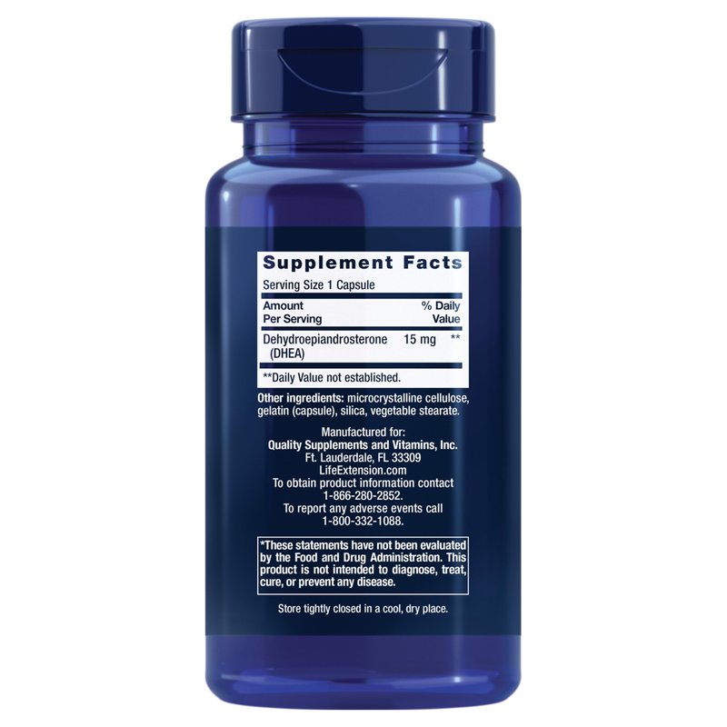 Life Extension DHEA 15 mg – Hormone Balance Supplement, Memory, Muscle Mass and Bone Density Support, Healthy Sex Drive, Gluten-Free, Non-GMO, 100 Capsules