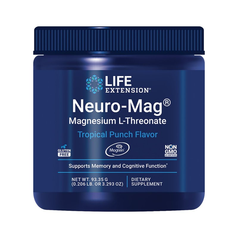 Life Extension Neuro-Mag Magnesium L-Threonate Powder (Tropical Punch) - Ultra-Absorbable - Supports Memory, Focus, Cognitive Function & Mood - Gluten No, Non-GMO, Vegetarian (30 Servings)