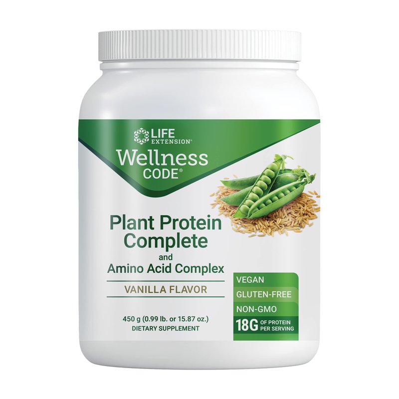 Life Extension Wellness Code Organic Plant Protein Complete & Amino Acid Complex - Vanilla Plant Based Pea Vegan Protein Powder Fitness Supplements- Gluten-Free, Non-GMO - 450 grams (30 Servings)