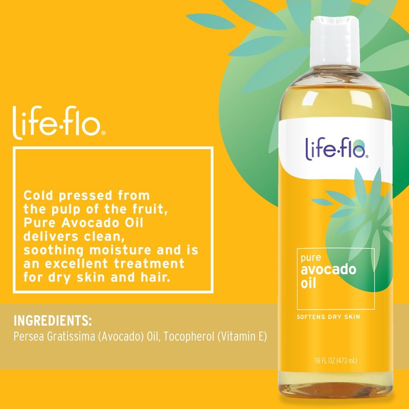 - Deep Moisture – Cold pressed from the pulp of the fruit, Life-flo Pure Avocado Oil delivers clean, soothing moisture and is an excellent treatment for dry skin. Use it in place of a body lotion for all-over softness, or try it as a gentle face oil or makeup remover.