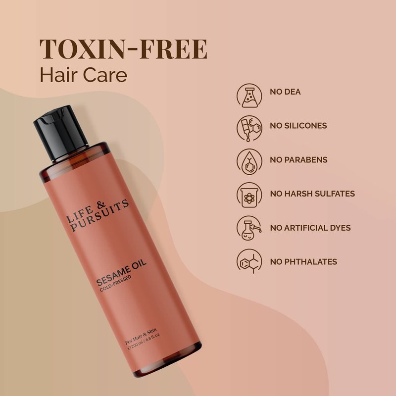 Life & Pursuits Cold-Pressed Sesame Oil Combo (6.76 fl oz) - Unrefined Moisturizer for Healthy Hair and Smooth Skin