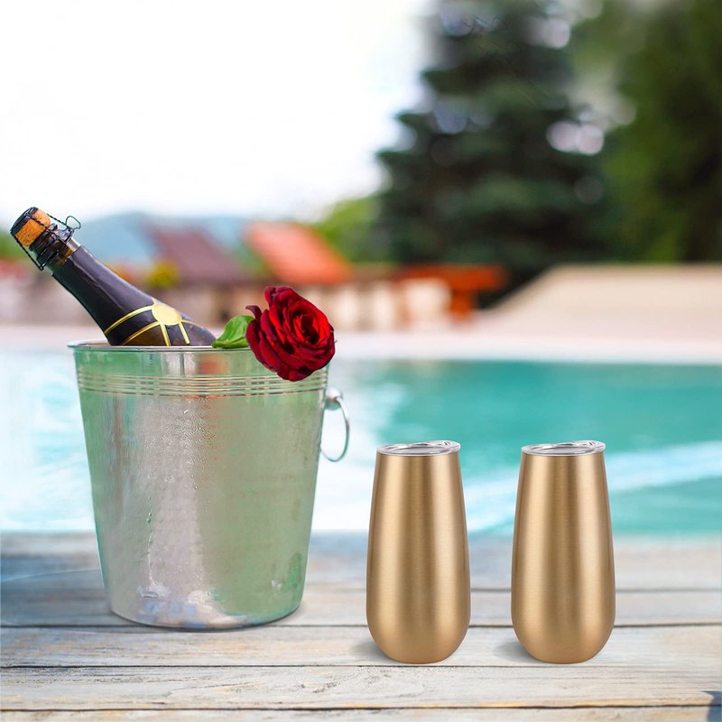 - WIDE APPLICATION: Our 6 oz champagne tumbler is not only suitable for various drinks such as champagne, cocktails, beer, wine, juices, coffee and so on, but also perfect for any occasions: party, wedding, home, office, pool, picnic, sports, camping, boats ...