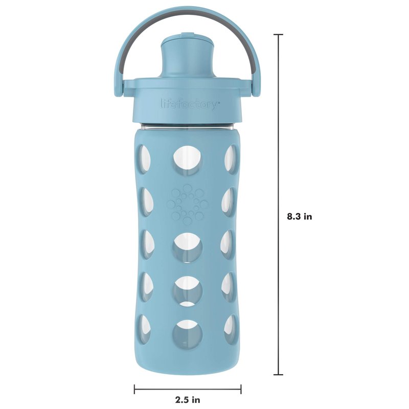 Lifefactory 12-Ounce Glass Water Bottle with Active Flip Cap and Protective Silicone Sleeve, Denim