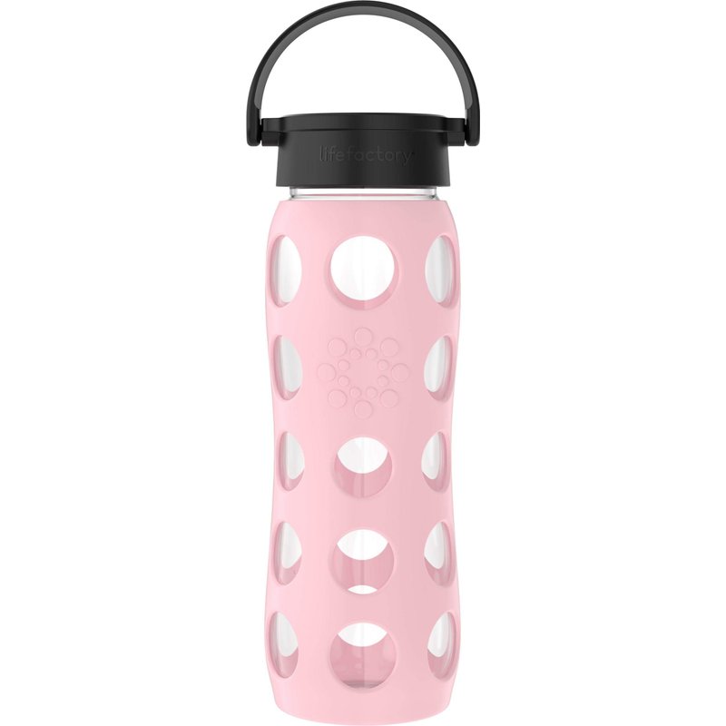 Lifefactory 22-Ounce BPA-Free Glass Water Bottle with Classic Cap and Protective Silicone Sleeve, Desert Rose