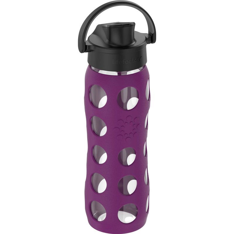 Lifefactory 22-Ounce Glass Water Bottle with Active Flip Cap and Protective Silicone Sleeve, Plum