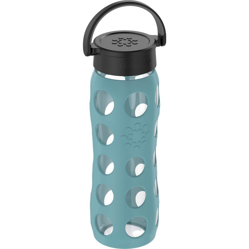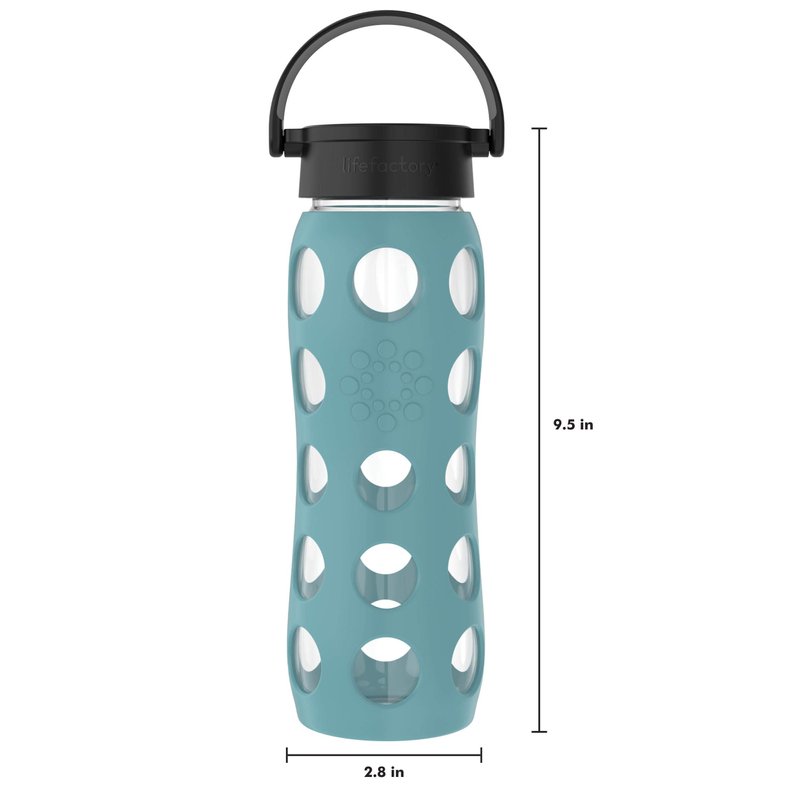 Lifefactory 22-Ounce Glass Water Bottle with Classic Cap and Protective Silicone Sleeve, Aqua Teal