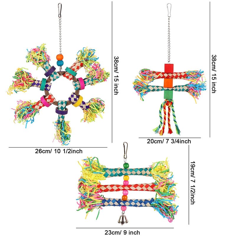 - VARIED DESIGN: The set Includes 5pcs different types of colorful bird Shredding toys, birds can play, chew, and explore freely, ideal size for small and medium birds, such as parakeets, conures, cockatiels, lovebirds, etc