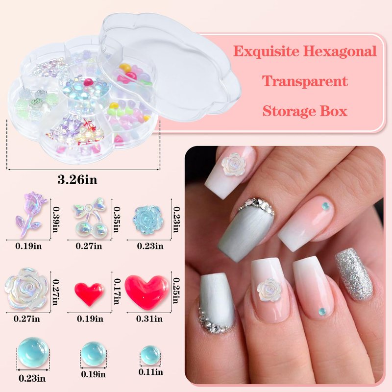 - Package Includes: A pack of 3D nail rhinestones charms with 7 different kinds of chrome resin charms for nails design, total weight is about 29 grams per box (including hexagonal boxes). This is not only easy to take nail gems charms, but also makes nail charms and gems organizing and storing convenient. Lifextol exquisite 3d nail charms for add an elegant touch to your nails, enjoying endless fun with nail jewelry to DIY nails design and nail decorations!