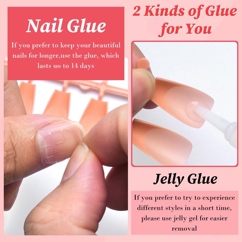 - Reusable Press on Nails with Useful Tools: This acrylic toenails pack has nail adhesive tabs and nail glue. Nail sticky tabs clean, and no residue. Sticky tabs is the best choice for peaple who change the toenails press on nails look frequently and don't hurt fingernail. Nail glue in this short square nails kit has strong adhesive, quickly dry to apply the press on nails for kids, and glue on toe nails for women apply easily even for beginners and toenail tips can lasting long time.