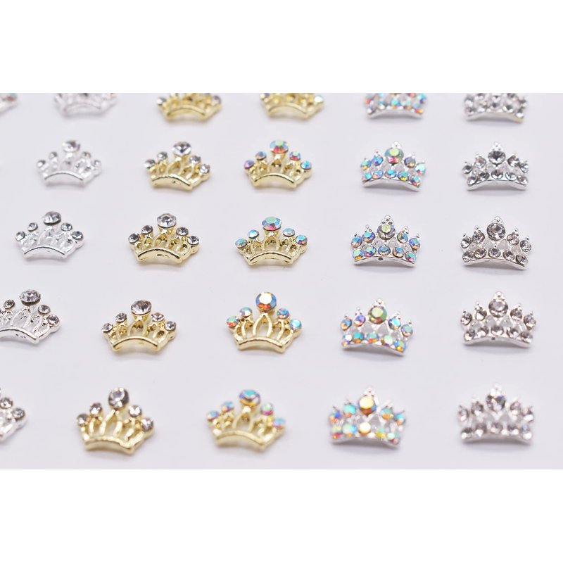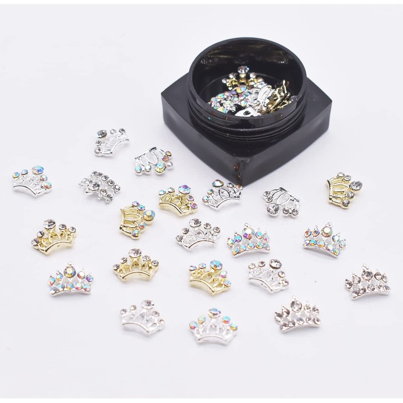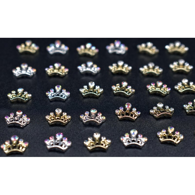 - 4. Package Content 30 Pcs alloy gold and silver crown nail charms with different color rhinestones designs, 5 pcs for each design. Shinny and fit for plenty of nail art designs