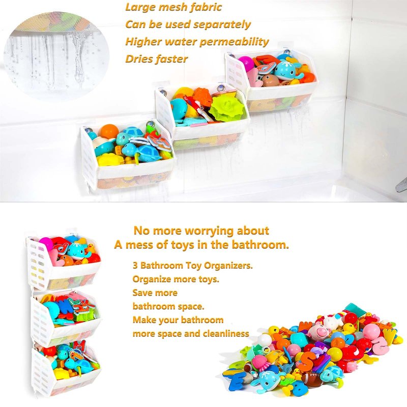 - FITS DIFFERENT BATHROOMS: Still worried about buying a bath toy organize that doesn't fit in your own bathroom, Ligereza's removable bath toy basket can be randomly placed according to different bathrooms, children's heights and ages, making it easier for children to get to the toys they want!