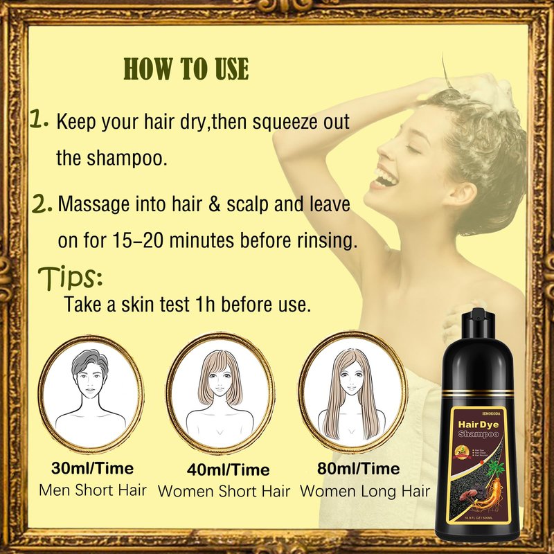 - šćHERBAL HAIR DYE SHAMPOOć Our light brown shampoo hair dye for women & men features a potent blend of ingredients, wild ginseng and sesame with active ingredient that make your hair healthy, glossy and shiny. Polygonum multiflorum can repair the hair, strengthen the hair roots, makes the hair strong and soft. Itās safe for all hair types.