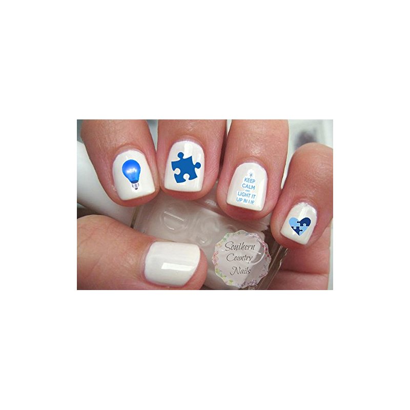 Light It up Blue Autism Awareness Nail Art Decals