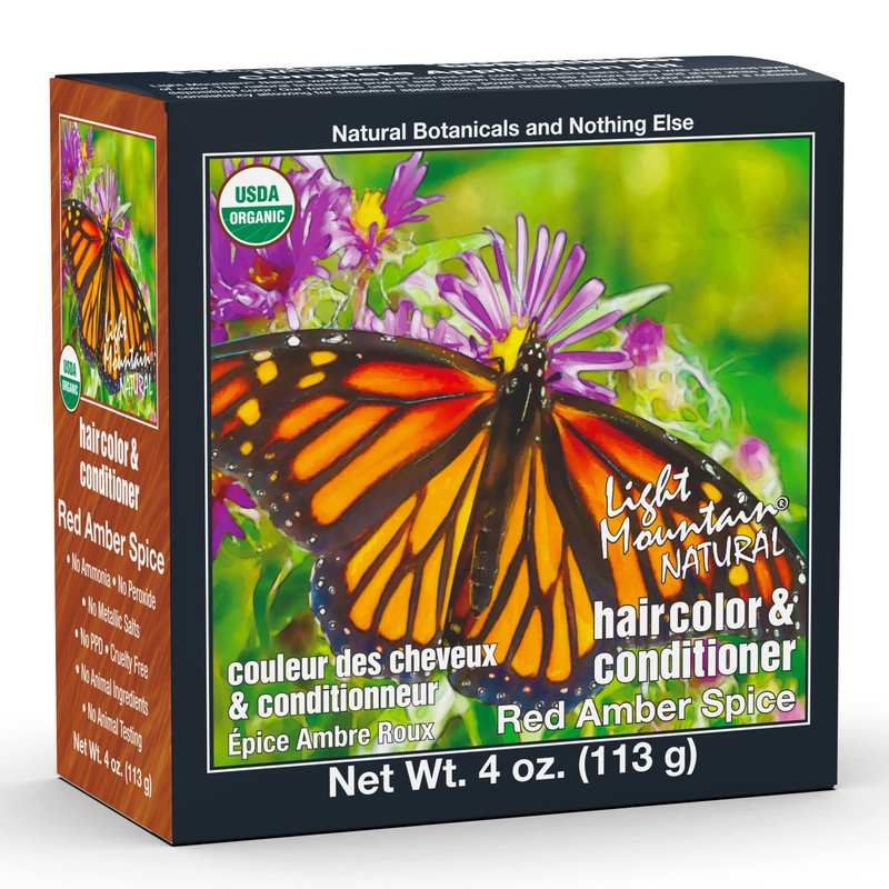 Light Mountain Henna Hair Color & Conditioner - Red Amber Spice Hair Dye for Men/Women, Organic Henna Leaf Powder and Botanicals, Chemical-Free, Semi-Permanent Hair Color, 4 Oz
