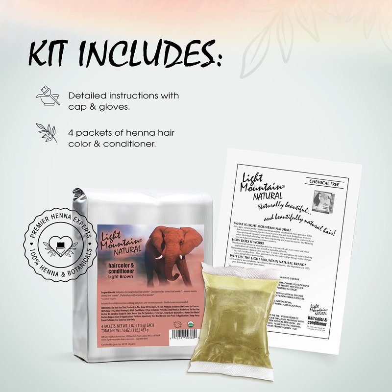 - PREMIER HENNA EXPERTS: At Light Mountain, we've been blending henna-based hair dyes for decades.