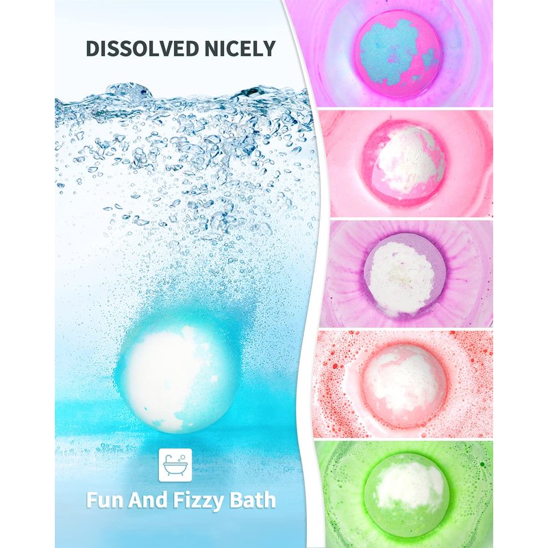 TURN YOUR TUB INTO A FIZZY AMAZING WORLD: Once dropped in water, these bath fizzes will float, whirl, and rich fizz, giving the water a brilliant color. As the bath bomb dissolves, the ice