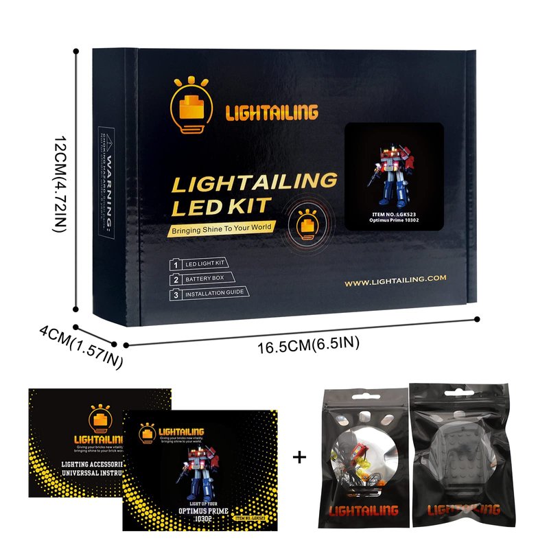 Lightailing LED light, means to light up the darkness, a fantastic item to light up your 10302 Optimus Prime building blocks model. It can make your building blocks become more beautiful and unique and it gives them new vitality. Our products, using environment-friendly material, are all packed in a new charming original box. Quality is guaranteed and all is handmade so you can buy this item without worry. Package includes: 1 USB light kits, model set not included, universal and special version instructions guide, battery box. By the way, all of the building blocks set featured in the images and video are just for the lighting show. Fit with any brand building blocks model and it is easy to install. LEGO is a trademark of the LEGO Group, which does not sponsor, authorize or endorse this product. We are dedicated to provide the best after-sale service and premium product for Lego fans around the world. Meanwhile, we provide a worry-free 2 year warranty after-sales service for our light kit, your satisfaction is a great motivation for us. For more information about our product, Please contact us at any time!